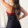 Camisola preta em cetim e renda trabalhada