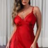 Camisola vermelha de cetim com detalhe em renda – Lingerie garota veneno